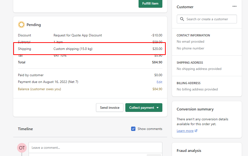 One order will have many shipping lines, each of them will have enough condition fields next to it.