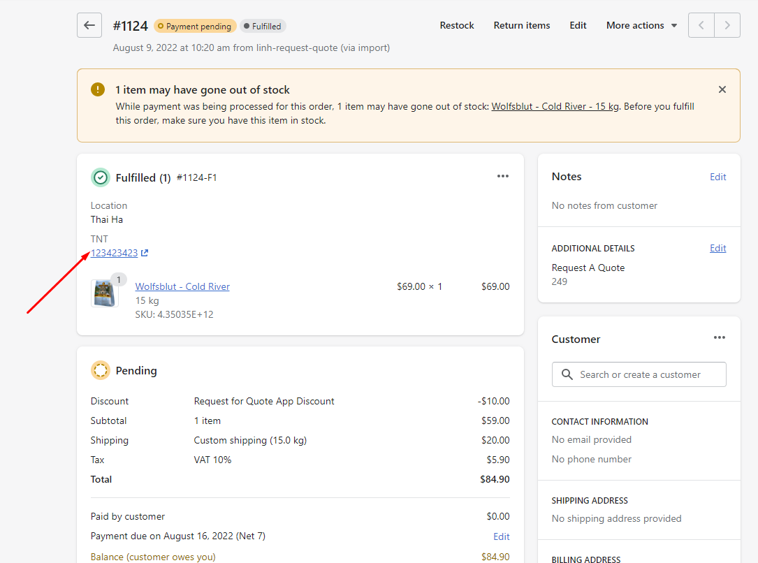 Shipping Title Shipment Status Current delivery status of fulfillment