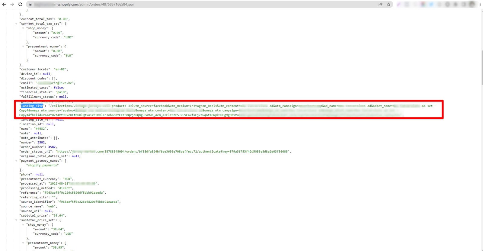 Landing Site The URL of the page when the buyer has come to the store, usually takes a key that changes a little like the domain