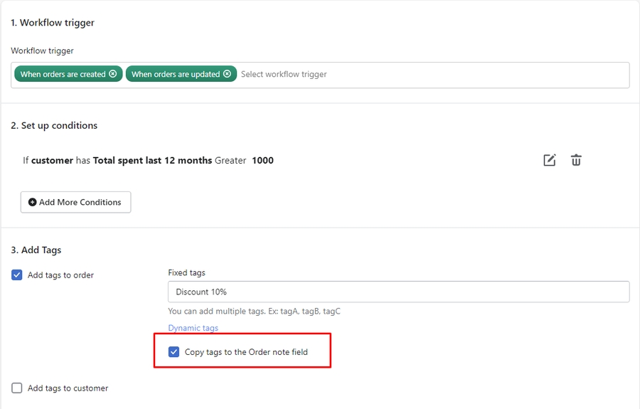 After you’ve set up this new tag, any orders, and customers that fulfill both conditions: