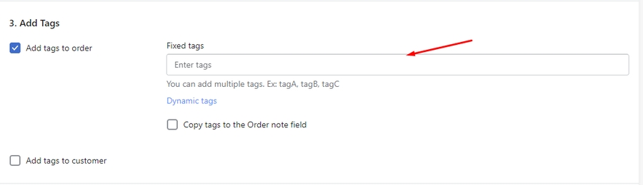 If you want to display order tags on the order note field. Check the box Copy Tags to the Order Note field and uncheck it if you don’t want to.