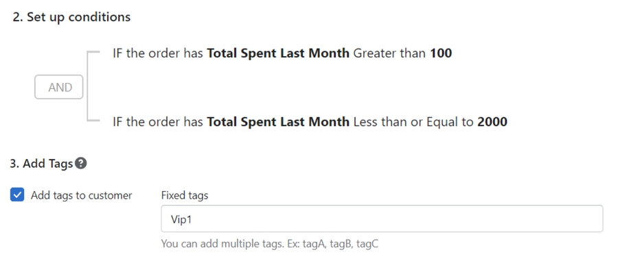 E.g. You can add customers with spending $100 ~ $2,000 in VIP1 group by this workflow. Easy right? 😉