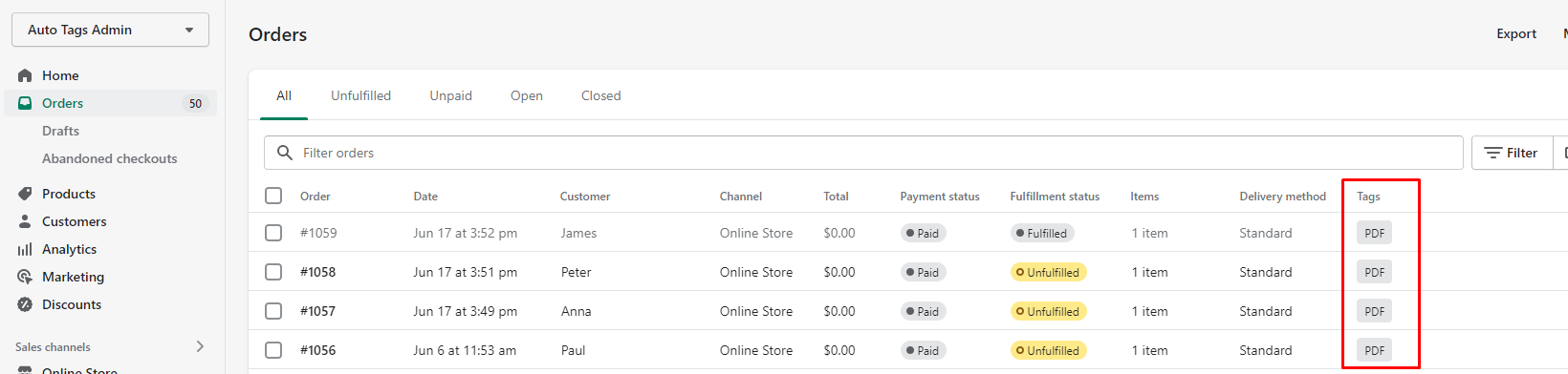 And this is your result on Order list. All tags are automatically added. Save tons of your time.